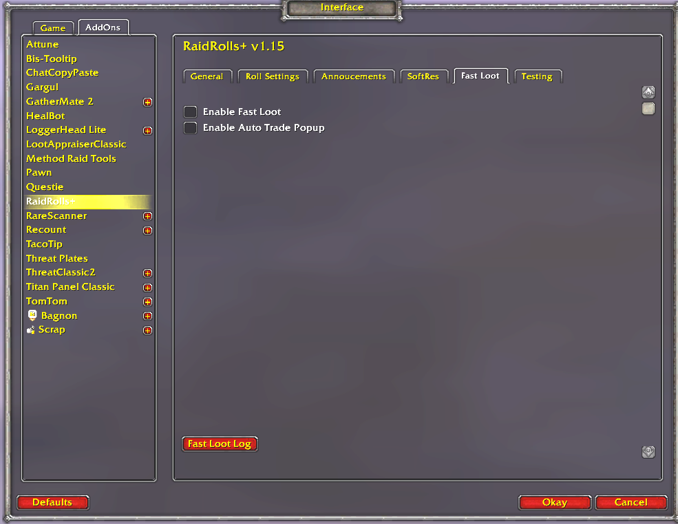 Fast Loot Settings